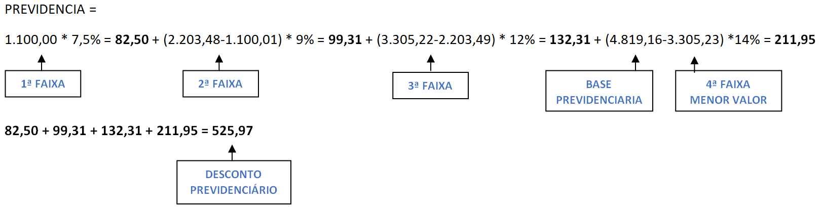 4. Ao chegar onde sua faixa se encaixa, subtraia o menor valor desta faixa de sua base previdenciária e