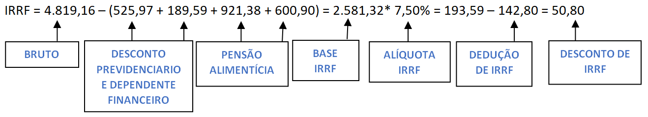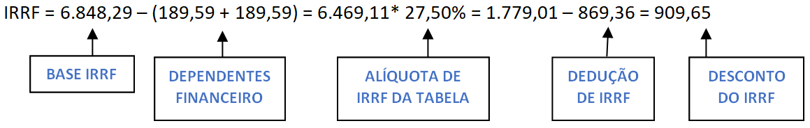 Base de IRRF no valor de R$ 6.848,29, com desconto Previdenciário já abatido da base no valor de R$